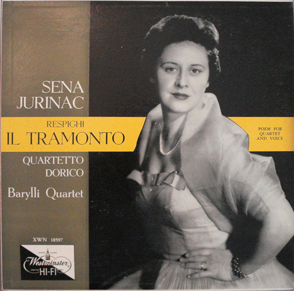 Ottorino Respighi, Roberto Ascoli [after Percy Bysshe Shelley]: Il tramonto, P. 101. Sena Jurinac, Barylli String Quartet [Walter Barylli, Otto Strasse, Rudolf Streng, Richard Krotschak] [1953]