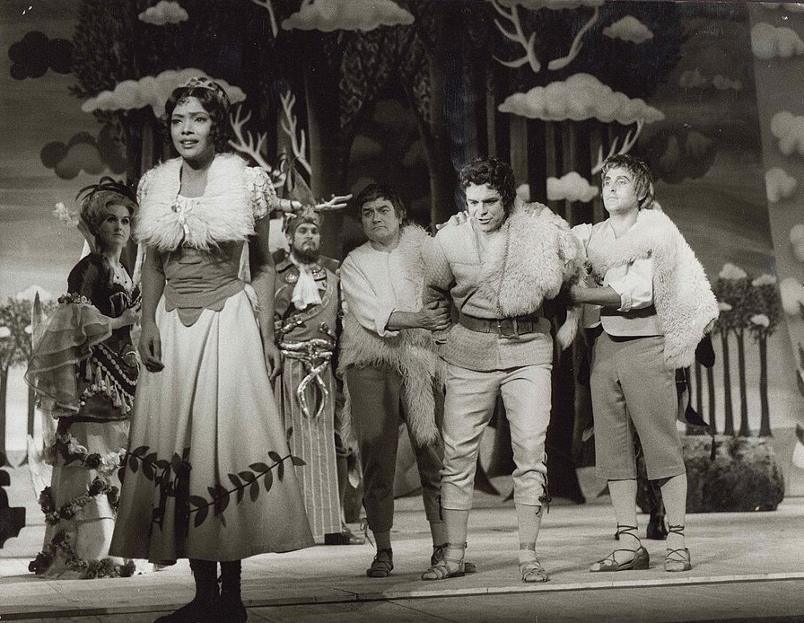 Klesie Kelly, Christa Lehnert, Dieter Brencke and Thomas Lehrberger in Die belohnte Treue [La fedeltà premiata] (Karlsruhe 1971)