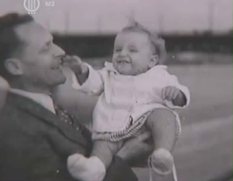 Júlia Hamari as a baby with her father
